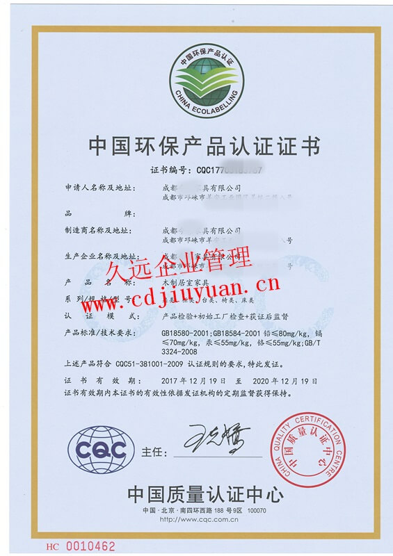 中國環(huán)境標志產(chǎn)品認證證書(十環(huán)認證)